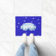 Ski-Schluchten mit Bergreflektion. Ski-Brille und Snowflake-Muster auf blauem Hintergrund. Verspieltes Sport Winter Design.