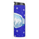 Ski-Schluchten mit Bergreflektion. Ski-Brille und Snowflake-Muster auf blauem Hintergrund. Verspieltes Sport Winter Design.
