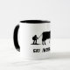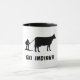 Ski Indiana, Silhouetteentwurf eines skitching Skier kennzeichnend beim Halten auf den Schwanz einer Kuh