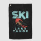 Skigrafik, die lautet: Ski Lake Tahoe. Funny Ski Design für den nächsten Skiurlaub in den Bergen im Winter.