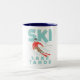 Skigrafik, die lautet: Ski Lake Tahoe. Funny Ski Design für den nächsten Skiurlaub in den Bergen im Winter.