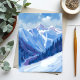 Ski Mountain | Blue Watercolor Mountain Range Postcard