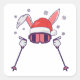 Ski Santa Rabbit mit Weihnachtsmannmütze und Skist Quadratischer Aufkleber