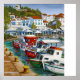 Von einem originalen Gemälde in Akrylen auf der Leinwand, von farbenfrohen Fischerbooten in Askiathos Old Port, Griechenland
