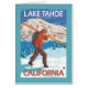 Skier Carry Snow Skis - Lake Tahoe, Kalifornien - Vintage Travel Poster wurde 2007 gegründet. Dieses Bild zeigt Szenen aus dem Lake Tahoe, CA.