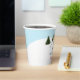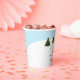 Serve drinks in winter style with these watercolor paper cups featuring Destei's original design of a girl skiing in a yellow jacket and green scarf through fir trees under a snowy blue sky. The design includes two personalizable text areas for a birthday message and name, making them perfect for ski birthdays, lodge gatherings or cozy winter celebrations. Ideal for hot cocoa, coffee or other warm drinks, these cups add a festive, coordinated touch to your party table.