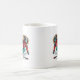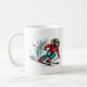 This ceramic coffee mug is shown with a sports skier art print.
