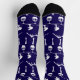 Stylish navy blue ski themed socks patterned with cute skiers, cable cars and mountains