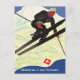 Die Schweiz Skikarte. Mann auf einem Skisprung, mit Bergen dahinter. Postkarte mit einem Text, den Sie anpassen können.