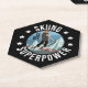 Funny Winter Ski Sport Illustration, zeigt Berggrafik und eine Frau auf Ski, und das Sprichwort: Ski ist meine Supermacht und kleine Sterne. Dies ist das ideale Geschenk für alle, die Ski fahren, Berge und Wintersport Lieben.
