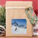 Skifahren mit Matterhorn in Zermatt, Schweiz Quadratischer Aufkleber