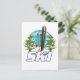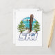 Skifahren, Skiplakatlogo in einer niedlichen Cartoon-Landschaft.