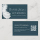 Ästhetische Krankenpflegerin beruflich QR Code Visitenkarte mit elegantem, modernem Skript und einer weichen, weißen Feder Illustration auf einem marineblau Hintergrund. Einfach mit der Vorlage personalisieren. Ideal für einen kleinen Business-Salon oder einen individuellen Ästhetik-Pflegepersonal. Original-Kunstwerk von Catherine Sweetman