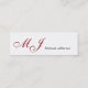 Skinny Monogram White Red Script Business Card Mini Visitenkarte