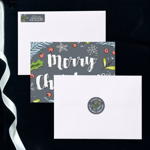 Skizzierte Winterzweige Holly und Spruce Muster Geschenkpapier Set