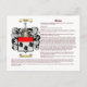 Alles auf und in einem Wappen hat eine Bedeutung inklusive der Farben. Der Text enthält die Beschreibung des Wappen, Wappen (falls vorhanden), Familienmotto (falls vorhanden), Namensursprung, Bedeutung des Namens und was jede Ladung und Farbe bedeutet. Sie haben nicht nur einen Ausdruck Ihres "Coat-Of-Arms", sondern auch die Bedeutung von allem darin. Als Referenz verwenden wir "Rietstap's Armorial General", "Enzyklopädie von Heraldry", "Fairbairns Buch der Wappen, "Das Buch der Familienwappen, "Das allgemeine Armor Englands, Schottlands, Irlands und Wales", "HPS-Nachnamen". Wenn es ein Wappen und/oder ein Familienmotto gibt, werden wir es hinzufügen. Unser Ziel ist es, so genau wie möglich zu sein.