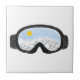 Skiggles Bergansicht Illustration. Skier-Brille-Illustration mit einer Landschaft Bergreflexion. Alpin Ski Brille Illustration. Skifahrer, Schneeschuhwanderer, Skischuhloipen. Geschenke für Skifahrer und Snowboarder. Die Skikögel entwerfen Wohngestaltung, Party, Schreibwaren und Geschenke.