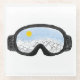 Skiggles Bergansicht Illustration. Skier-Brille-Illustration mit einer Landschaft Bergreflexion. Alpin Ski Brille Illustration. Skifahrer, Schneeschuhwanderer, Skischuhloipen. Geschenke für Skifahrer und Snowboarder. Die Skikögel entwerfen Wohngestaltung, Party, Schreibwaren und Geschenke.