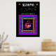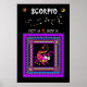 Der Skorpion ist das grafische Symbol des Geburtszeichens, Scorpio. Die zwischen dem 23. Oktober und dem 21. November geborenen sind unter dem Sternbild des Skorpios geboren. Einige der Persönlichkeitsmerkmale von Scorpio sind Witzigkeit und besitzen eine große Leidenschaft für die Ideale, an die sie glauben. Sie dominieren tendenziell in Beziehungen. Sie neigen auch dazu, idealistisch zu sein. Dieses sehr attraktive Poster zeigt einen wirklich niedlichen, lächelnden Skorpion in Rosa, Orange und Gelb. Ebenfalls angezeigt wird die kosmische Konstellation von Sternen, die Scorpio darstellen. Das niedliche Skorpion ist ein mehrfarbiges Formmuster, das einem Flickwerk ähnelt, das bei der Quiltherstellung verwendet wird. Die Farben in diesem Rahmen sind lila, blau, orange und gelb. Ein weiteres Symbol ist das orangefarbene Symbol, das stark einem Skorpion ähnelt, den Sie zwischen den Terminen 23. und 21. Oktober zentriert finden.