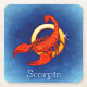 Die farbige Abbildung zeigt einen blauen Hintergrund mit einem roten Skorpion - das Symbol des astrologischen Tierzeichens Scorpio (23.-21. Oktober).