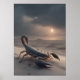 Eine dramatische Abbildung eines Skorpion auf Wüstensand in der Nacht, beleuchtet von einem leuchtenden Vollmond und umgeben von einer geheimnisvollen Landschaft. Ideal für Naturliebhaber, Naturliebhaber und Wüstenfans.