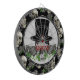 Der Schädel, der einen Spitzenhut mit Scarabäusdekoration, schwarze Rosen, eine oberflächliche kenntnis des Regenbogens trägt, ist für die Augen in der Hauptrolle, und Sie haben eine einzigartige Weise der Ankündigung Ihrer Sonne, rote Briefe herein zu unterzeichnen.