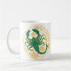 Skorpiozeichen des Zodiaks in Grün und Weiß auf einer Tasse.
