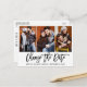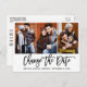 Moderne Pinselschrift ändert das Datum Hochzeit verschoben Neuen Hochzeitstag Paar Foto Postkarte