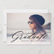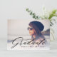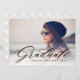 Feiern und ehren Sie Ihren Absolvent mit diesem stilvollen und eleganten Abschluss Foto. Mit elegantem, modernem Kalligraphieüberlagern, das "Graduate" mit einem durchsichtigen weißen Farbverlauf direkt über Ihrem Foto sagt. Personalisieren Sie mit Ihrem eigenen Foto, den Namen des Absolventen und das Jahr der Klasse auf der Vorderseite. Fügen Sie Ihre Party-Daten auf die Rückseite.
