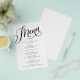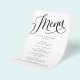 Dieses trendige Design enthält eine Skriptüberschrift mit Schnörkeln. Verwenden Sie die Vorlage, um Ihre Informationen auszufüllen. Mit der Funktion "Weitere Anpassung" können Sie den Schriftart (Größe, Stil, Farbe) ändern, weitere Textzeilen hinzufügen, das Layout ändern oder Text auf der Rückseite hinzufügen. Das Papier ist schwer und eignet sich hervorragend für ein Menü!