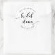 Brautparty Aufkleber mit den Worten "Brautparty" in einer entspannenden kursiven Schrift in schwarz auf weißem Hintergrund. Personalisieren Sie es, indem Sie den Platzhalter-Text ersetzen. Für weitere Optionen, wie zum Beispiel den Schriftart zu ändern und ihn zu verändern, erweitern Sie die /Contract-Kurve oder den Abstand zwischen den Buchstaben, klicken Sie auf die Schaltfläche "Anpassen". *Bitte beachten Sie, dass das Zazzle-Wasserzeichen, das in der Zoomvorschau angezeigt wird, NICHT auf dem gedruckten Endprodukt erscheint. © Rosewood and Citrus