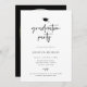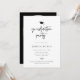 Moderne Drehbuch, Graduiertenparty Einladung. Merkmale, Graduierungsakzent und Bogenrahmen Foto.