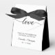 Personalisiert diese Gunst-Kisten mit den Namen der Braut und des Bräutigams, besondere Nachricht und Hochzeitstag. Elegant, modern und elegant mit einem modernen Script-Schriftart für das Wort, das es alles "Liebe" sagt. Schwarz-Weiß für eine Schwarz-Krawatte-Veranstaltung, modernes Hochzeitsthema für Ihre Geschenkideen.