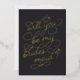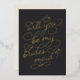 Frag deinen besten Mädels, mit diesen schönen Karten zu stehen. Design-Features "werden Sie meine Brautjungfrau sein" in verzierter Goldfolienskripte Typografie mit einem subtilen Herz in das Design, auf einem weichen schwarzen Hintergrund gearbeitet. Fügen Sie eine benutzerdefinierte personalisierte Nachricht auf der Rückseite in modernen handgeschriebenen Skripten und klassischen Serifenschrift hinzu.