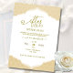 Eine Skript-Gold- und weiße Iftar-Dinner-Einladung mit islamischer Umrandung. Die Karte ist leicht anzupassen mit Ihrer Formulierung, Schriftart, Schriftfarbe, Papierform-Optionen und Auswahl an Papierarten. Die subtile Vorderseite sieht atemberaubend aus, während die goldene kontrastierende Rückseite diese Iftar-Dinner-Einladung wirklich einzigartig macht.