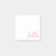 Moderne und schicke Post-it-Notizen mit "Hallo" in einem schönen handgeschriebenen Schriftart machen eine Aussage. Teil einer Sammlung von Parcel Studios. Text und Farbe können angepasst werden.