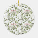 Ein wunderschönes Weihnachtsbaumschmuck zum Gedenken an Ihre erste Weihnachtszeit als verheiratetes Paar. Das Design hat Ihr Lieblings-Foto in einer kreisförmigen Blende mit einem Aquarellarm von mistletoe verziert. Personalisieren Sie die Überschrift des roten kursiven Schriftartes und Ihre Namen in dunkelgrün. Auf der anderen Seite ist ein Muster von Aquarellmücken Äste.