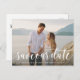 Herzlichen Glückwunsch zu Ihrer Verlobung! Speichern Sie die Date Ankündigungen sind der erste große Schritt in der Hochzeitsplanung! Denken Sie daran, Ihr Ankündigung Datum freihalten wird den Ton für Ihren großen Tag Set, Sie werden mit einem unvergesslichen Design und einem flüchtige Blick in das, was kommt, beeindrucken! Dieses Design zeichnet sich durch einen handgeschriebenen Script-Schriftart und ein spielerisches Hintermuster aus. Für eine erweiterte Anpassung dieses Designs, wählen Sie einfach die Schaltfläche "Anpassen" oben! Alle Fotografien werden nur als Beispiel angezeigt und sind nicht zum Weiterverkauf bestimmt. Dieses Produkt ist nur für den Kauf vorgesehen, wenn Beispielbilder durch eigene Fotos ersetzt werden. Fotos mit freundlicher Genehmigung von ©Blush Fotografy