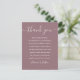 Skript Vielen Dank Mauve Wedding Platzkarte Postkarte