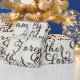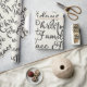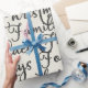 Elegantes WeihnachtsPackpapier. Kennzeichnet stilvolles Skript mit Weihnachten bezogenen Wörtern. Minimale Art, mit schwarzem Skript auf einem elfenbeinfarbenen Hintergrund.
