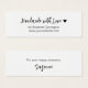 Personalisierte "Handmade with Liebe" Mini-hänger-Tag oder Mini-Visitenkartenvorlage mit Platzhaltern für Ihren Firmennamen, Ihre Website, Ihr Firmenlogo und Ihre Unterschrift. © y.BEE PAPERIE