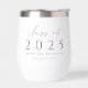 Moderne Abschluss-Design mit dem Namen des Absolventen und der Schule unter dem Bild "Klasse des Jahres 2024" in weichem schwarzem Buchstaben. Personalisieren Sie einen für Ihren Uni-Absolvent, Ihre Freunde oder die ganze Klasse für eine einzigartige Graduiertenparty Gunst.