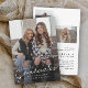 Diese moderne, elegante Foto Script Multiple Graduates Graduation Invitations Kombi bietet ein Script-Absolventen-Overlay und anpassbare Namen, Schule und Fotos an der Vorderseite. Die Rückseite bietet Glückwünsche und Veranstaltungsdetails mit weiteren 2 Fotos. Eine großartige Art, Ihre Absolventen zu präsentieren.