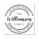 Ein klassisches personalisiertes Gummidesign mit doppelkreisförmigem Rahmen und elegantem Schriftnamen und Rücksendeadresse-Briefmarke.