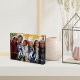 Mit diesem modernen freistehenden Acrylglas-Foto schaffen Sie einen angenehmen Aufenthalt, einen Urlaub oder einen besonderen Augenblick. Fügen Sie Ihr Lieblings-Horizontal- / Landschaftsorientiertes Foto mit "Familie" überlagert in weißem handgeschriebenem Stil moderne Kalligraphie Schrift.