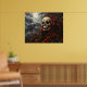 A hauntingly beautiful gothic oil painting featuring a weathered skull entangled in thorny vines and vivid red roses, set beneath a luminous full moon. This dramatic piece blends beauty and darkness, perfect for Halloween decor, gothic art lovers, or alternative interior styles.