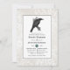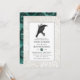 Gotische Hochzeitsessen-Probe-Einladung mit einem Raben und einem Spitzen-Hintergrund mit einem Schädel-Damast-Muster rückwärts.