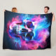 Diese Fleecedecke hat ein Schädeldesign darauf.