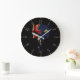 Skull australische Flagge Black Large Clock. Dieses kühne Stück besticht durch ein stilisiertes Schädelmotiv, das nahtlos in die ikonische australische Fahne integriert ist. Das auffallende Design verbindet schwarze Eleganz mit patriotischem Flair und macht es zu einem einzigartigen Statement-Stück