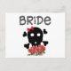 Cooles Skelettbriddesign für angesagte Bräute, gotische Briden oder Halloween Bräute. Dieser Schädel hat einen roten Bogen und rote Blume und das Wort Braut in Schwarz und Weiß.